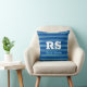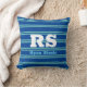 Bold Monogram & Name, Lt. Teal Lines on Deep Blue Cushion
