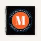 Bold Monogram & Text | Black White Orange & Blue Notebook