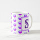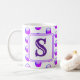 This monogram tea or coffee mug is a great way to add a colourful accent to your morning routine. A bright purple polka dot pattern appears against a white background on both sides of this mug. The letter "S" is featured in a square and easily be personalised.