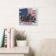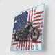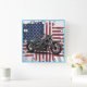 Bold motorcycle against the American flag backdrop Square Wall Clock