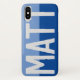 Have your choice of name shown boldly on a two-tone phone case. Example shows the name Matt. Personalise with your choice of short name.