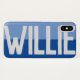 Have your choice of name shown boldly on a two-tone phone case. Example shows the name Willie. Personalise with your choice of short name.