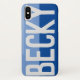 Have your choice of name shown boldly on a two-tone phone case. Example shows the name Becky. Personalise with your choice of short name.