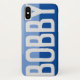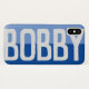 Have your choice of name shown boldly on a two-tone phone case. Example shows the name Bobby. Personalise with your choice of short name.