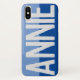 Have your choice of name shown boldly on a two-tone phone case. Example shows the name Annie. Personalise with your choice of short name.