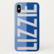 Have your choice of name shown boldly on a two-tone phone case. Example shows the name Lizzie. Personalise with your choice of short name.
