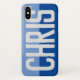 Have your choice of name shown boldly on a two-tone phone case. Example shows the name Chris. Personalise with your choice of short name.