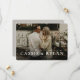 Share the news of your engagement and upcoming marriage with this one-photo horizontal save the date card featuring an elegant type treatment in white that sits at the bottom of a horizontal photo. The back is a neutral shade with a subtle texture pattern. The colour can be adjusted by clicking "Customise."