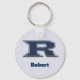 Bold Navy Blue Letter R Initial Monogram Key Ring