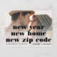 New year, new home, new zip code Bold new address photo moving announcement. Add your photo, your names with a contemporary bold font typography.