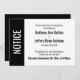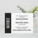 Here's a bold, modern card for notifying your guests if it's become necessary to change your wedding date. Use the template fields to add your personal details and make this unique, simple design your own. A colour block along the left is black, matching the text and back of the card; "NOTICE" appears in bold white over this strip on the left. All fonts and colours are also editable. Please reach out with any special requests or for customising assistance. Other pieces with alternate wording are also available in the collection.