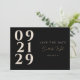 Make your engagement announcement stand out with this modern and elegant Contemporary Save the Date design. Featuring bold number typography in ivory on a sleek black background, with a touch of gold highlighting the couple's names for a luxurious touch. The minimal and contemporary design on the front ensures your guests are informed about your upcoming wedding, while the back provides space for additional details and a convenient QR code. This save the date invitation is perfect for couples looking for a stylish and sophisticated way to announce their special day.