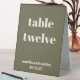 Bold Minimalist Olive Fall Retro Simple Custom Wedding Table Number Tent Sign