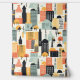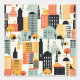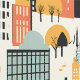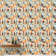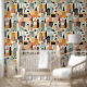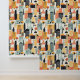 Bold Orange and Mint Green City Building Pattern Wallpaper