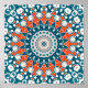 This striking mandala design features bold contrasts of fiery orange, deep teal, stone grey, and crisp white. Its layered symmetry radiates from the centre in repeating petal-like forms, creating a dynamic flow that feels both geometric and organic. The design carries a totem-like energy, with shapes that echo protective symbols and rhythmic patterns found in cultural motifs. The vivid palette of orange and teal gives the piece a modern vibrancy while still grounding it in timeless mandala structure. Perfect for anyone drawn to bold colour combinations and eye-catching symmetry, this design captures balance, rhythm, and intensity in every detail.