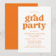 Celebrate in style with these modern graduation party invitations, featuring "Grad Party" in bold orange lettering with the graduate's name and party details displayed below. The sleek and simple design makes these graduation invites perfect for both high school and college graduates. Set the tone for a fun and memorable celebration with these eye-catching orange graduation party invitations!