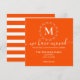 Preppy orange and white stripes in the back of announcement complete the design.