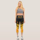 Modern bold orange yellow fire flames on black background Leggings. Text can be personalised.