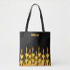 Modern bold orange yellow fire flames on black background Leggings. Text can be personalised.