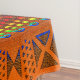 Transform your table with this stunning tablecloth, adorned with intricate tribal motifs that capture the essence of traditional African dance. The vibrant colours of orange, deep blue, and lush greens and yellows bring the beauty of the African landscape into your home, from fiery sunsets to verdant savannahs.