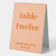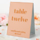 Guide your guests effortlessly with this stylish wedding table number sign. Featuring a modern, minimalist design in soft Peach Orange, this double-sided tented card is perfect for receptions, ensuring each table is easy to find. Personalise with names and wedding date for a seamless and coordinated décor element.