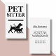 Bold and powerful pet sitter business card template with your profession highlighted on the front in modern and bold typography with your contact information displayed on the flip side. A modern simple design with dog and cat symbol for a pet sitting service.