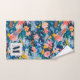 Bold Pink and Blue Abstract Floral Monogrammed Bath Towel Set