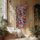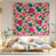 Bright pink and rich blue blooms burst across this colourfully patterned blanket.