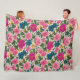 Bold Pink and Blue Floral on Cream Fleece Blanket