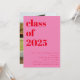 Celebrate the graduate in style with this bold and modern "Class of 2025" graduation party invitation with your grad's photo on the back. Featuring striking red text on a vibrant pink background, this design is perfect for a fun and memorable celebration. Easily customisable with the graduate’s name, date, and location details, this invitation sets the tone for an exciting event.