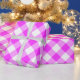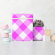 Stylish wrapping paper features dark pink, pink, and white squares in a bold, buffalo plaid. The pink and white gingham pattern was digitally designed from scratch.