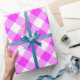 Bold Pink and White Diagonal Gingham Plaid Wrapping Paper