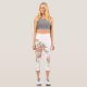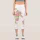 Bold Pink Cabbage Roses on White Background Capri Leggings