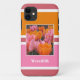 This girlie phone case features a closeup photograph of spring pink and orange tulips with bold stripes. Personalise with your name. If you need help with personalisation or transferring this design to another product, contact me at suzparada@gmail.com.