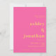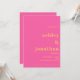 Modern minimal wedding invitation featuring bold typography in bright pink and orange colour style.