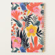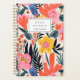Personalise this planner with your name in black italics framed by a white rectangle, on a bold, colourful pattern of pink, yellow and orange flowers on a beige background.