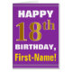 Bold, Purple, Faux Gold 18th Birthday w/ Name Card