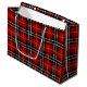 Red, black, white, and gold plaid decorates this Christmas large gift bag. It's the perfect gift wrapping for a simple, classic style.