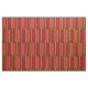 This simple yet decorative modern fabric design features a colourful retro abstract pattern of bold geometric stripes in colours of red, orange, brown, olive green, black and tan.