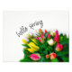 Bold tulips nature flower photography has text hello spring which can be personalises for unique wall art decor for home or office..  Original photograph copyright Ann Powell all rights reserved.