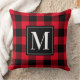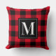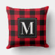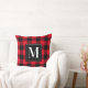 Bold Red Black Buffalo Plaid Monogram Christmas Cushion