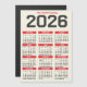 Stay organized in style with this bold and modern 2026 calendar. Featuring a "year at a glance" layout, this design allows you to see all twelve months clearly while showcasing your family name at the top in striking red typography. The large, collegiate-style "2026" text and clean black-and-red color scheme on a cream background make it perfect for the kitchen fridge, office, or family command center. Customize it with your own family name to create a practical household accessory or a thoughtful New Year’s gift.