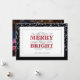TeeLofts' bold holiday typography and photo card design features Merry & Bright bold modern Christmas red typography overlaid on a light grey ampersand as the primary design elements. The outer border is holiday greenery line art in red and slate blue. It's easy to add your family names on the front and photo to the dated reverse side. #Christmas #Holidays #ChristmasCards