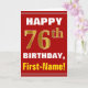Bold, Red, Faux Gold 76th Birthday w/ Name Card