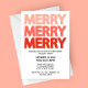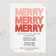 Bring modern cheer to your holiday gathering with this eye-catching party invitation! The design features the word “MERRY” stacked three times in bold, all-caps lettering that shifts from a soft blush pink at the top to a deep festive red at the bottom, creating a fun ombré effect. Set against a clean white background, the minimal yet striking style makes your event details easy to read and the invitation both contemporary and festive. Perfect for Christmas parties, office holiday celebrations, or family gatherings, this customisable card lets you add your own date, time, location, and RSVP details. A simple, stylish way to spread holiday cheer!