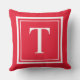 A bold outdoor pillow featuring a white monogram initial inside a square frame border on a vibrant red background. The timeless serif letter and clean geometric frame create a striking, confident accent for patio furniture, deck seating, or porch decor. The initial is fully customisable.