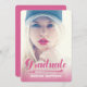 Pink Bold Retro 2 | Graduation Party Invitation for 2014. Design by Elke Clarke © for MonogramGallery. A pink vintage script font text overlay with the word "Graduate" is printed on the front with a pink ombre effect. Add your invitation text on the back of the card with a modern white font on a pink background colour. Other colours available.