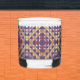 Bring a splash of retro flair to your bar cart with this stylish **Rocks Glass** featuring a bold geometric pattern of overlapping circles in rich purple, vibrant orange, sunny yellow, and deep red. The perfect mix of vintage and modern for sipping whiskey, cocktails, or mocktails in true mid-century style.