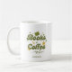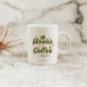 An elegant, green and gold "books + coffee" mug, designed with retro typography and botanical elements. Please message the designer if you wish to have any colour changes done for you.