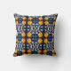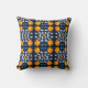 Bold Retro Floral Illustration in Orange and Blue Cushion